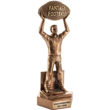 Show Your League Who’s The Champion With Crown’s Fantasy Football Laptop Man Trophy! This Fantasy Sculpture Features A 3D Molded Design And An Antique Gold Finish. The Hexagon Platform He Stands On Truly Makes This Award Unique.