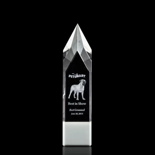 Featuring a stunning peak that bevels upward to a point, the Coventry finds a harmonious balance between beautiful white optical crystal and the message you value, brought to life with our innovative Dimensions 3D technology.