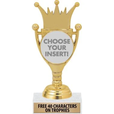 Our Exclusive Crown Cup Insert Trophy Features A Unique Cup And Crown Design With Your Choice Of Base. Honor Your Outstanding Achievers With This Great Award! Additional Info: FREE Engraving Up To 40 Characters. Choose An Insert From Our Huge Selection! Need To Order Additional Plates? Click Here To Purchase Plate For Marble Or Luxury Base.